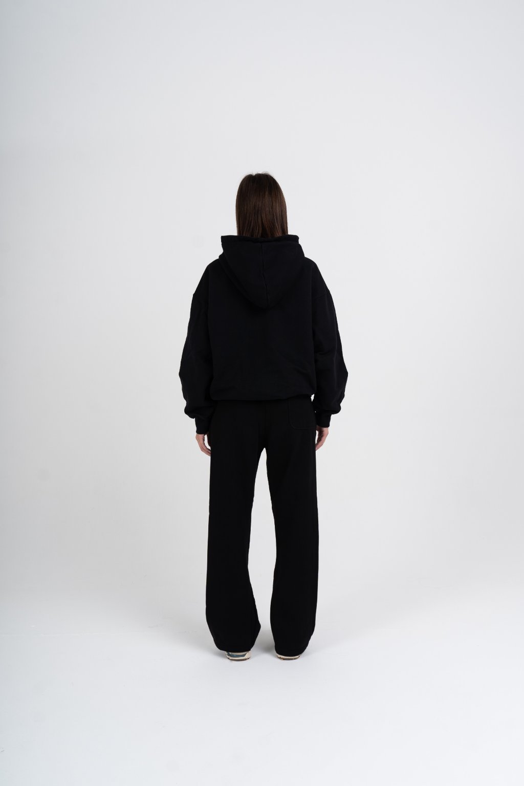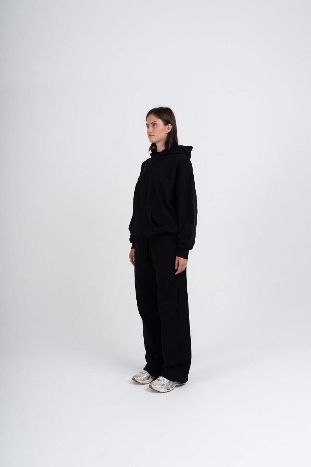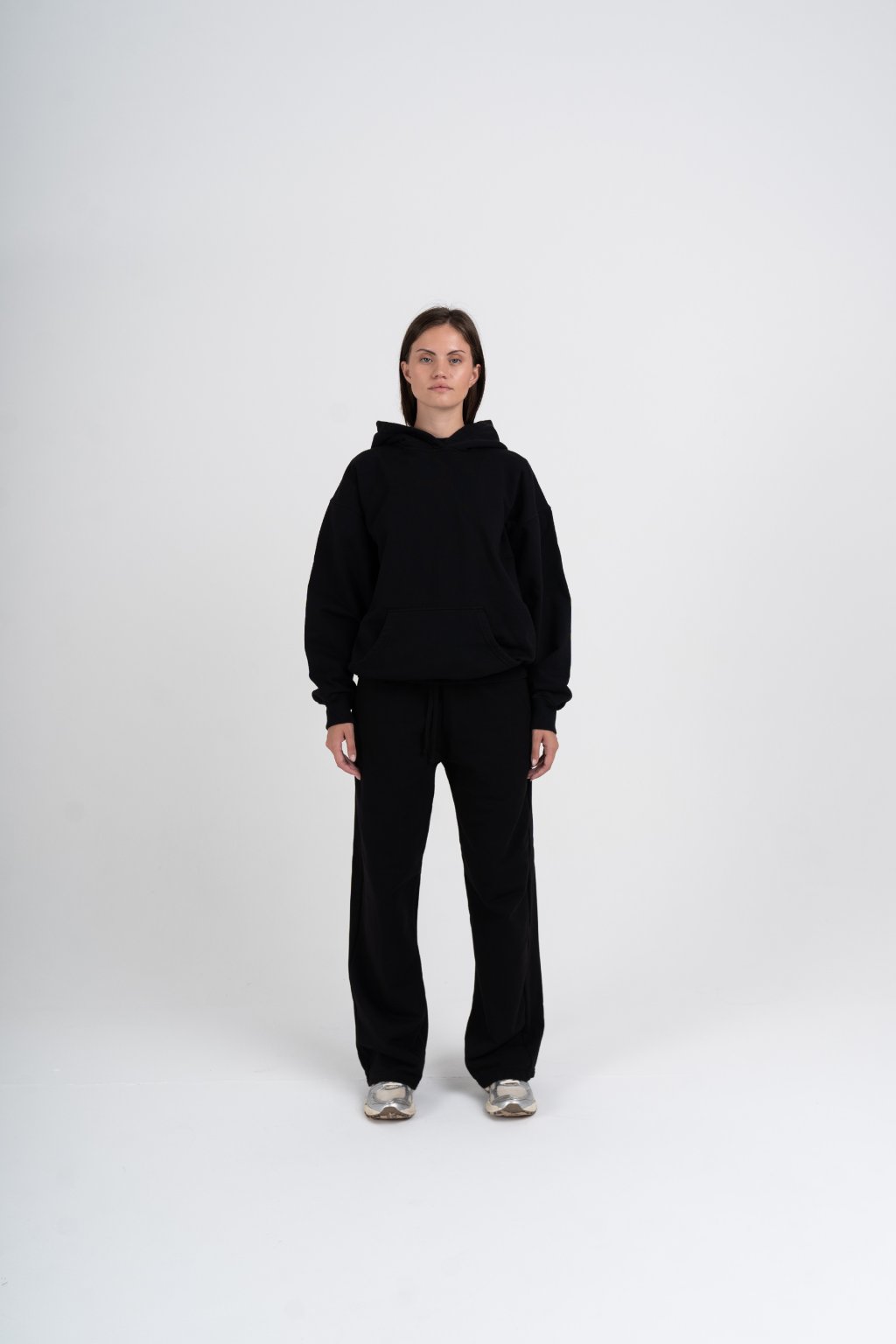 Tato těžká hoodie s kapucí, ušitá z naší prvotřídní french terry s gramáží 500gsm, definuje pohodlí díky své prodyšné a zároveň jemné textuře. Hoodie je navržena tak, aby udržovala balanc mezi tepelným komfortem a absorpcí vlhkosti a proto je ideální pro vrstvení během chladnějších dnů. Oversize střih umožňuje volnost pohybu, ať už jste venku, nebo odpočíváte doma. Klokaní kapsa poskytuje praktický úložný prostor, zatímco žebrovaný patent na lemu a kapuce pomáhají udržet chlad venku.